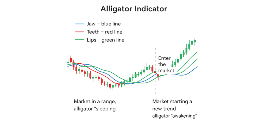 Penunjuk Buaya adalah salah satu alat paling terkenal Bill Williams. Ia terdiri daripada tiga Purata Bergerak yang dijadikan lancar yang mewakili "rahang", "gigi," dan "bibir" buaya.