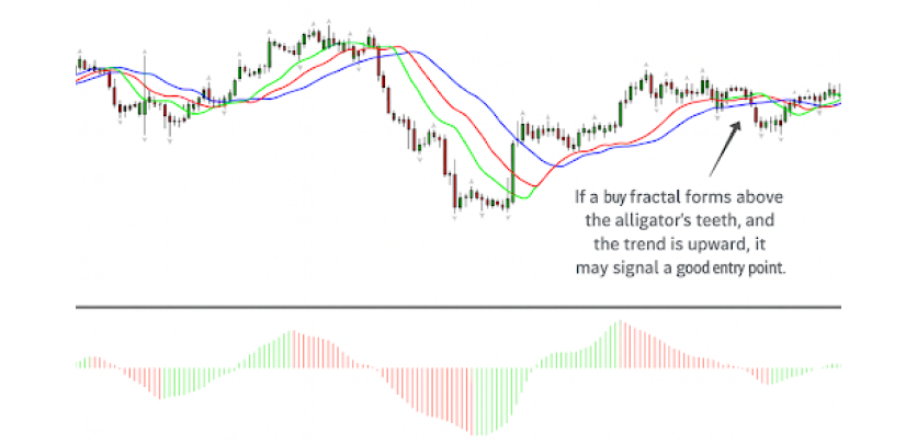 Contohnya, jika fraktal beli terbentuk di atas gigi buaya, dan trennya adalah ke atas, ia mungkin menandakan satu titik entri yang baik.
