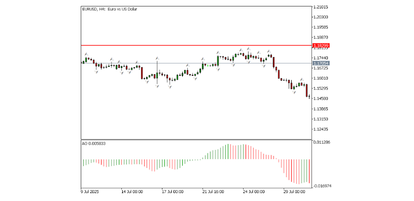 - Sahkan arah momentum dengan Awesome Oscillator.